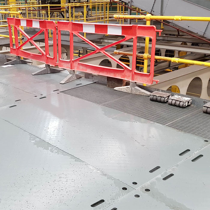 Multiple DuraMatt Medium Duty Access Mats are simply connected with either heavy-duty cable ties, standard 2-way or 4-way connectors, or even steel fast-fit connectors.